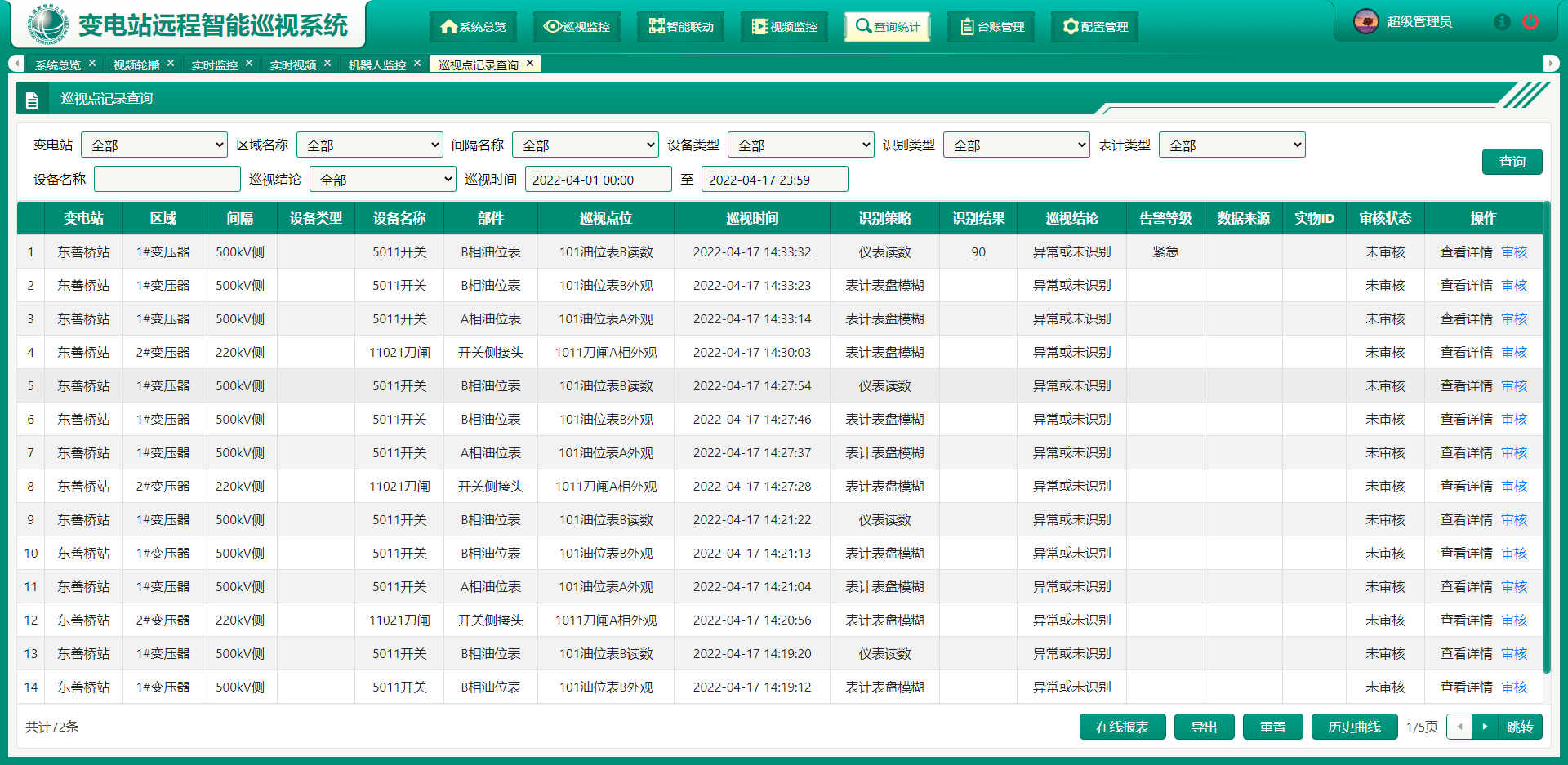 通过人工智能技术的应用,实现可视化巡视图像的智能识别、自动分类、数据分析,配合自主巡视任务制定,实现例行巡视、特殊巡视、专项巡视、自定义巡视及静默监视,有效降低运维人员巡视工作量和巡视压力。